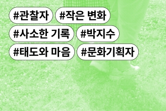 지지봄봄 44호 -이것도 문화예술교육이에요? 기꺼이 관찰하고 기록하며 살아감에 대하여 박지수 <마음이 열리는 현장> 수업을 시작하기 전, 늘 그렇듯 오늘의 시간을 이끌어줄 선생님과 나의 소개가 이어진다. 여러 번 자기소개를 해왔지만 이 순간만큼은 여전히 긴장된다. 어떻게 나를 소개해야 할지 머릿속으로..