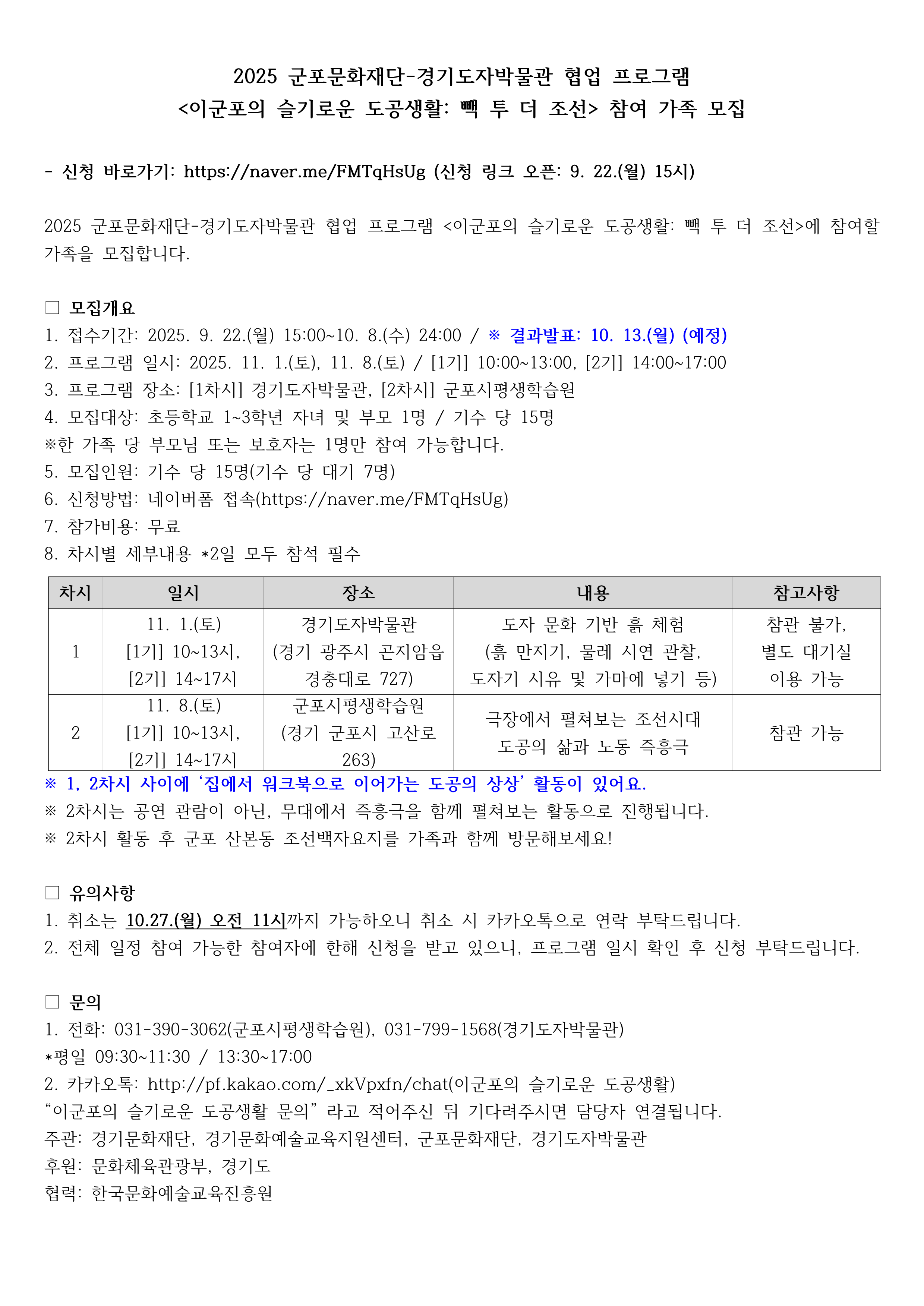 • 교육장소: 경기도자박물관, 군포시평생학습원