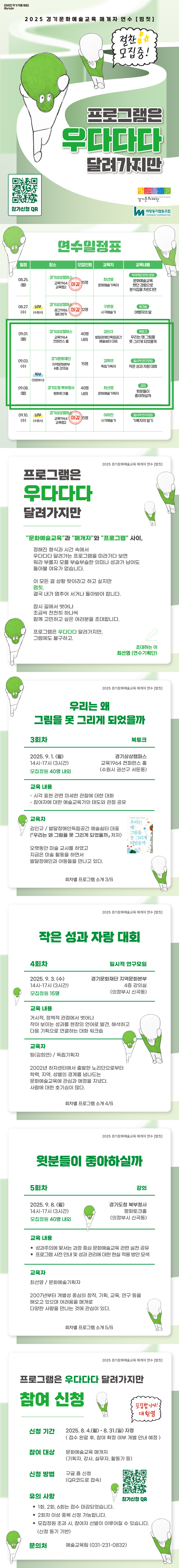 - 2025 경기문화예술교육 매개자 연수 [멈칫] '프로그램은 우다다다 달려가지만' 신청 연장 안내