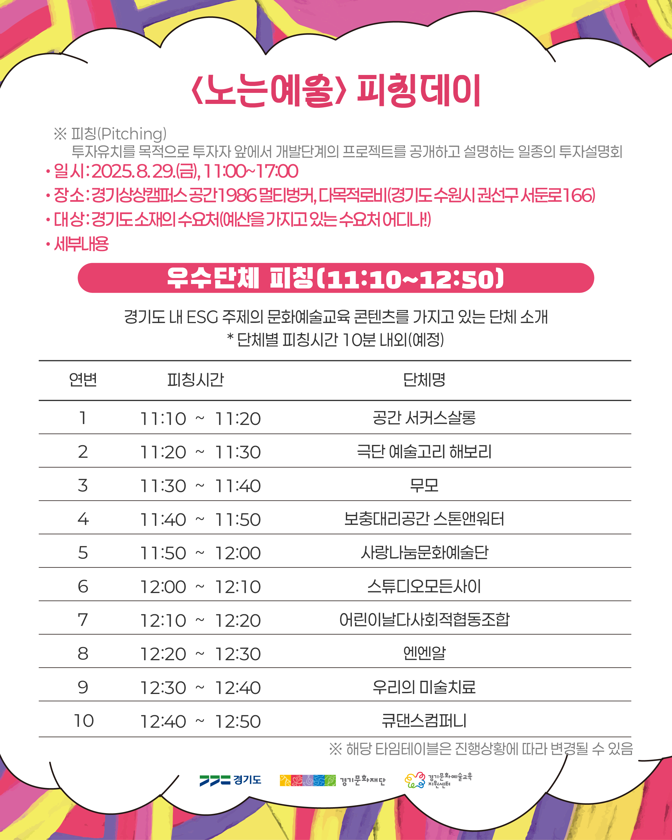 ㅇ 2025 노는예술 피칭데이 사전신청 및 이벤트