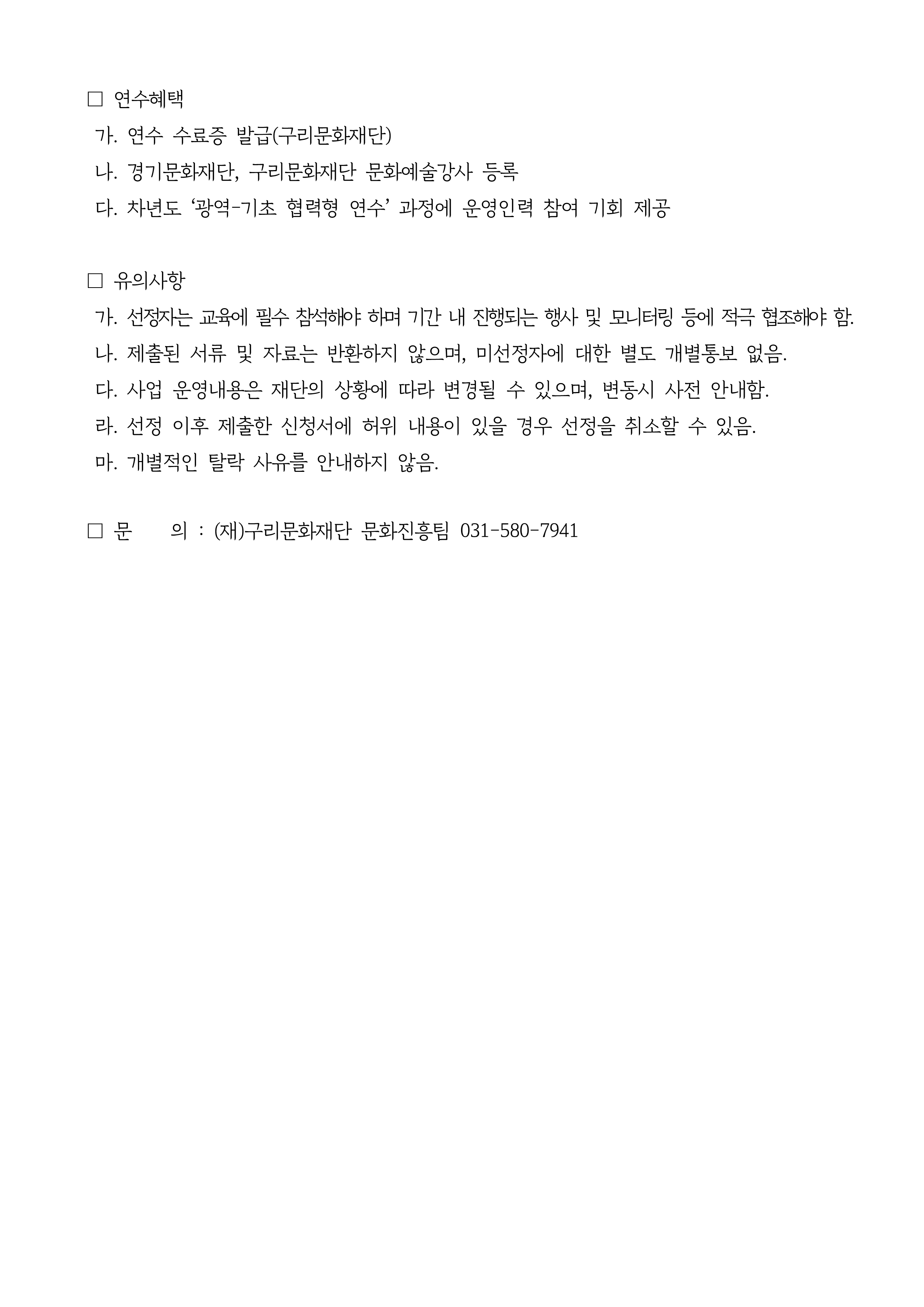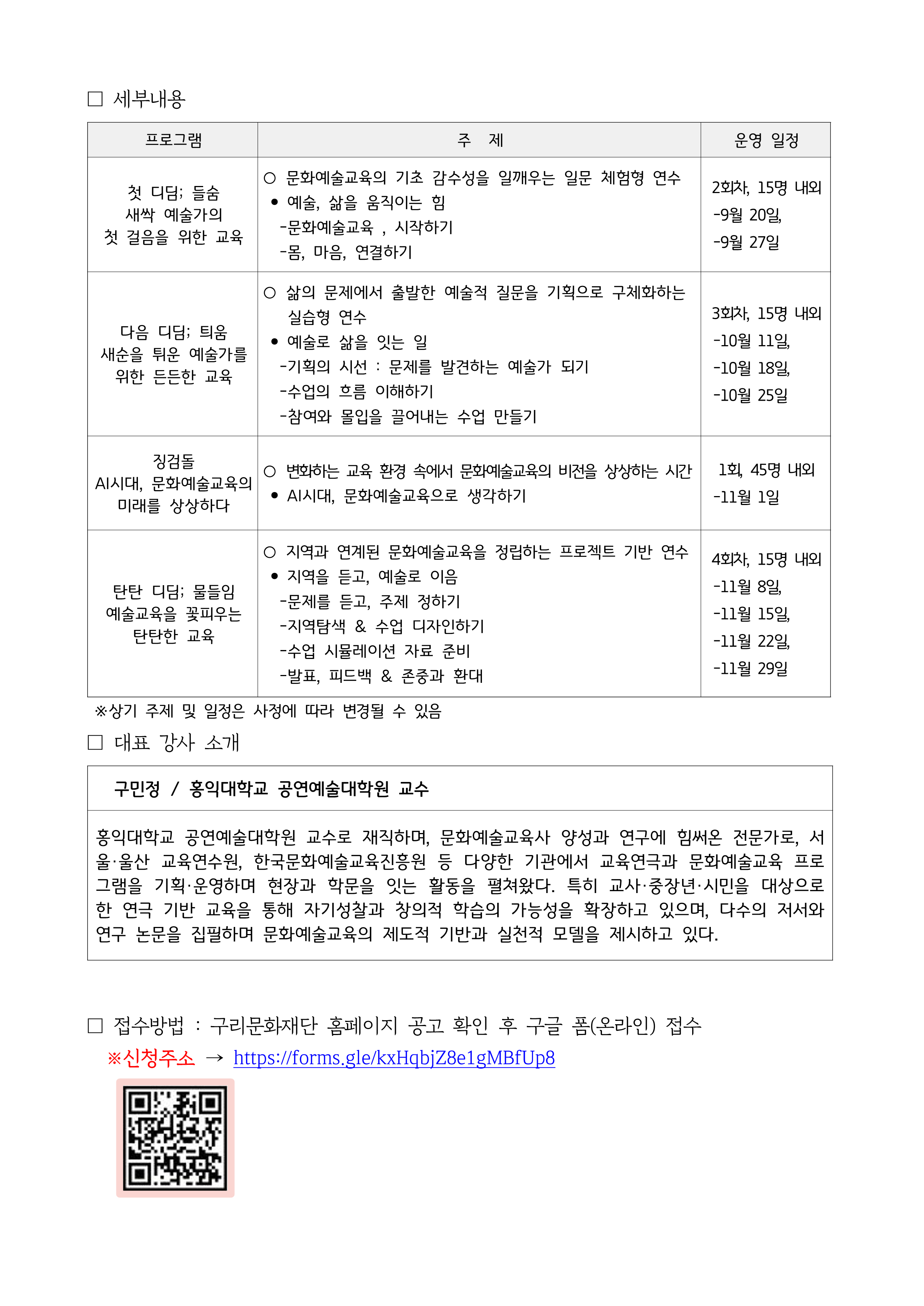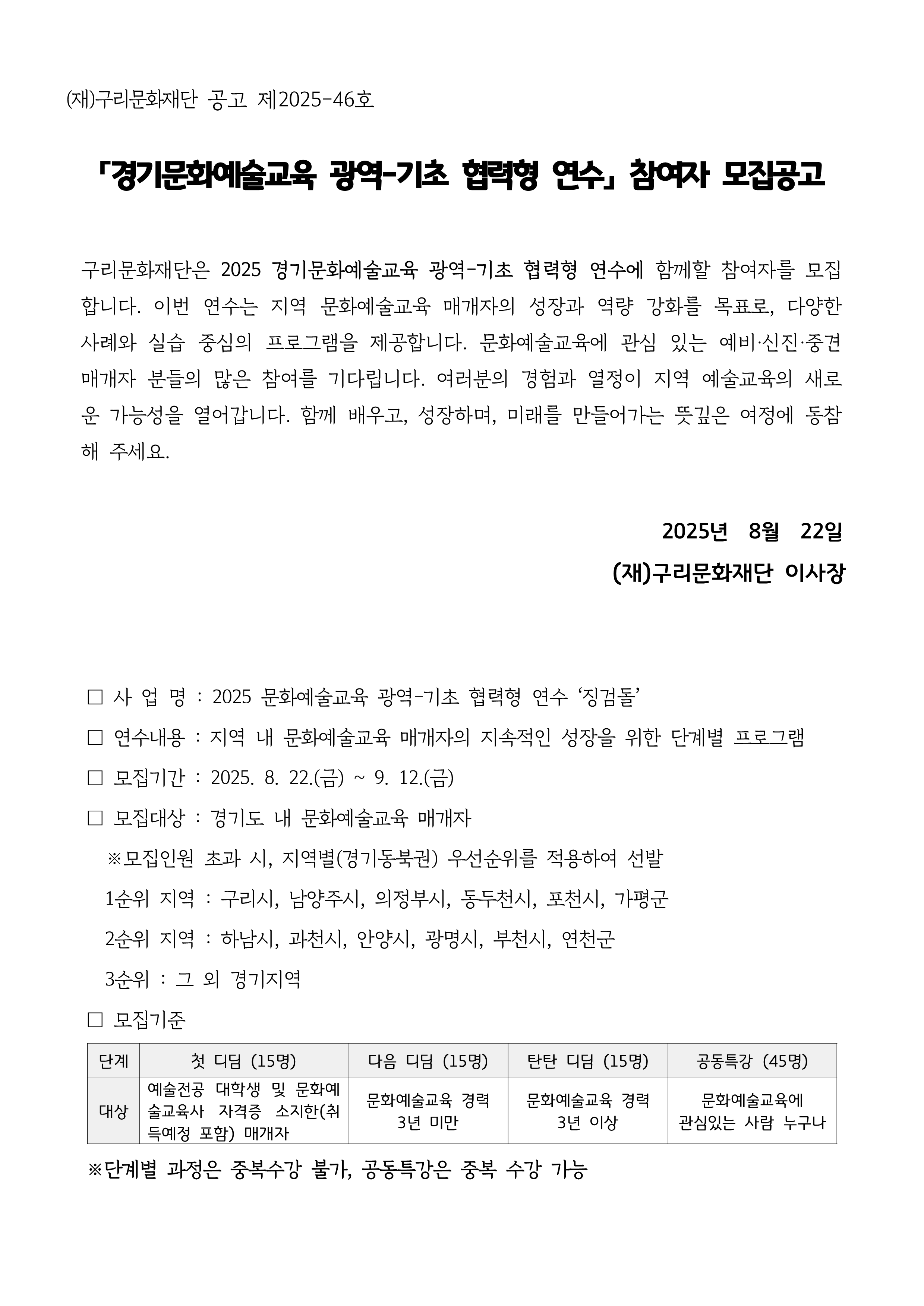 • 구리문화재단 광역-기초 협력형 연수 '징검돌' 참여자 모집